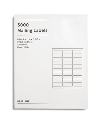 Baseline Laser/Inkjet Mailing Labels, 1" x 2-5/8", White, 3000 Labels (Compare to Avery 5160, 5260 & 8160)